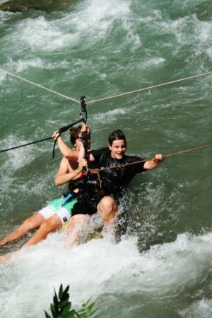 Unvergessliches Erlebnis am Sandner Wasserfall: 5 Meter freier Fall, Aufprall auf der Bootsspitze. Es ist gut, wenn man schon vorher Vertrauen zu dem erfahrenen Steuermann gefasst und die Mannschaft seine Kommandos wirkungsvoll umgesetzt hat.Paddelschlag im Gleichklang oder seitenverkehrt, je nachdem, ob das Boot über eine Stromschnelle gebracht oder aus einer Walze hinausmanövriert werden muss. Höhepunkte der Tour: der Fußmarsch an der Rückseite eines Wasserfalls, der Sprung vom Boot, gemeinsam Kentern, aus der Ahrn gefischt und ins Boot gehievt werden, und, und, und ... man muss es einfach erlebt haben!